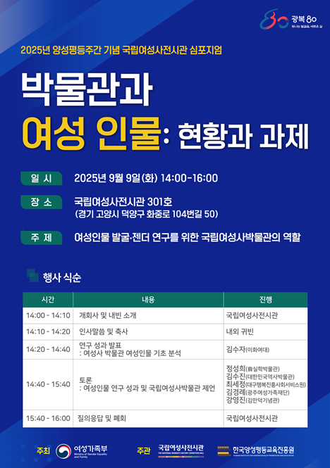 국립여성사전시관, 2025년 양성평등주간 기념 ‘박물관과 여성인물: 현황과 과제’심포지엄 개최